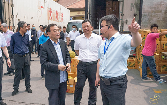 為加快構建河北省現代化冷鏈物流體系建設,2021年5月20日,河北省政協調研組省政協農業和農村委員會主任楊玉成一行到河北新發地高碑店市場調研農產品倉儲保鮮冷鏈物流設施建設。
