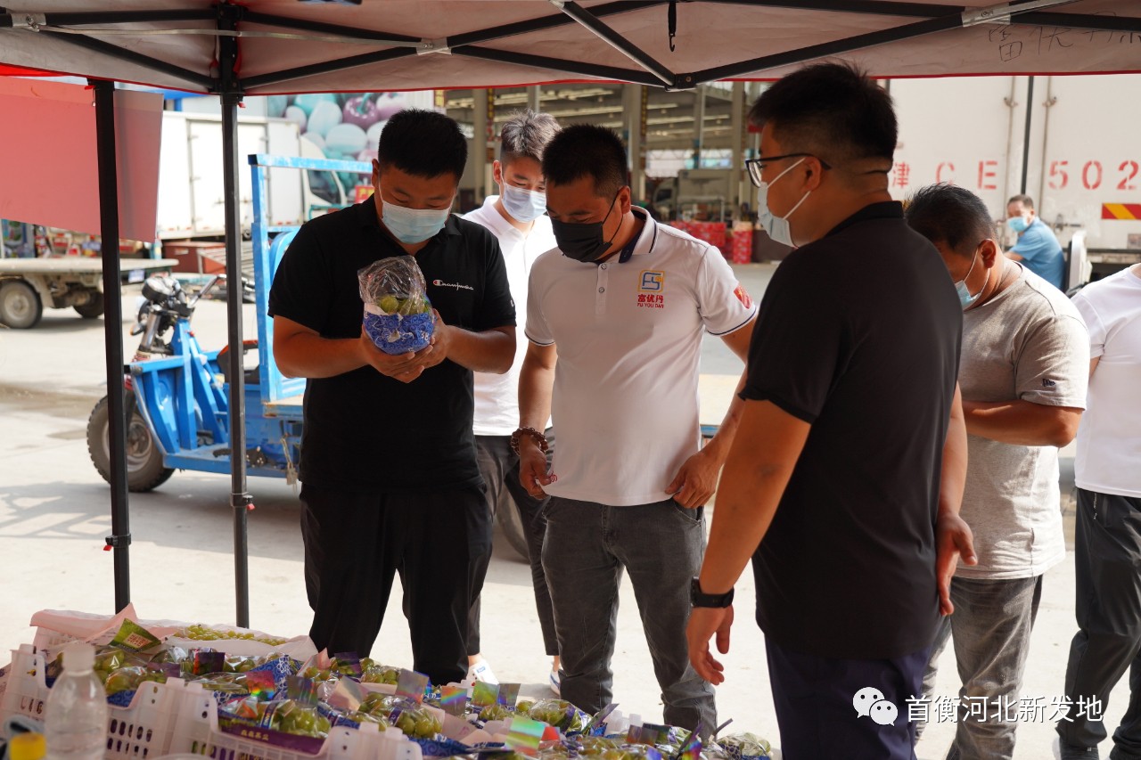 8月5日,繼順平蘋果對(duì)接后,徐水葡萄產(chǎn)銷對(duì)接活動(dòng)順利落實(shí)。保定市徐水區(qū)農(nóng)業(yè)局帶隊(duì),徐水劉伶田園小鎮(zhèn)總裁助理王森一行到高碑店市場(chǎng)葡萄專區(qū)就市場(chǎng)行情、在售品種、銷售渠道進(jìn)行深入了解,并就葡萄種植、采摘、存儲(chǔ)等相關(guān)問題與場(chǎng)內(nèi)商戶展開深入交流。