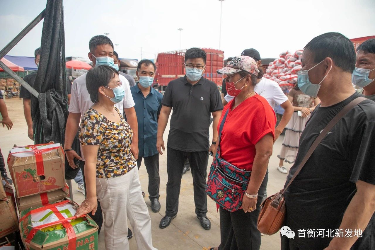 8月9日,高陽縣農(nóng)業(yè)農(nóng)村局副局長高麗輝、特產(chǎn)股負(fù)責(zé)人蔣濤、前柳灘村支書邊志鵬和辛立莊村支書王彪帶領(lǐng)當(dāng)?shù)胤N植大戶深入市場調(diào)研,與場內(nèi)的大戶深入交流,詳細(xì)了解梨、紅薯和山藥的在售品種、銷售渠道和價格行情等信息。調(diào)研團(tuán)對場內(nèi)購銷兩旺的繁榮場景給予了高度肯定,紛紛表示要與市場建立長效合作機(jī)制。