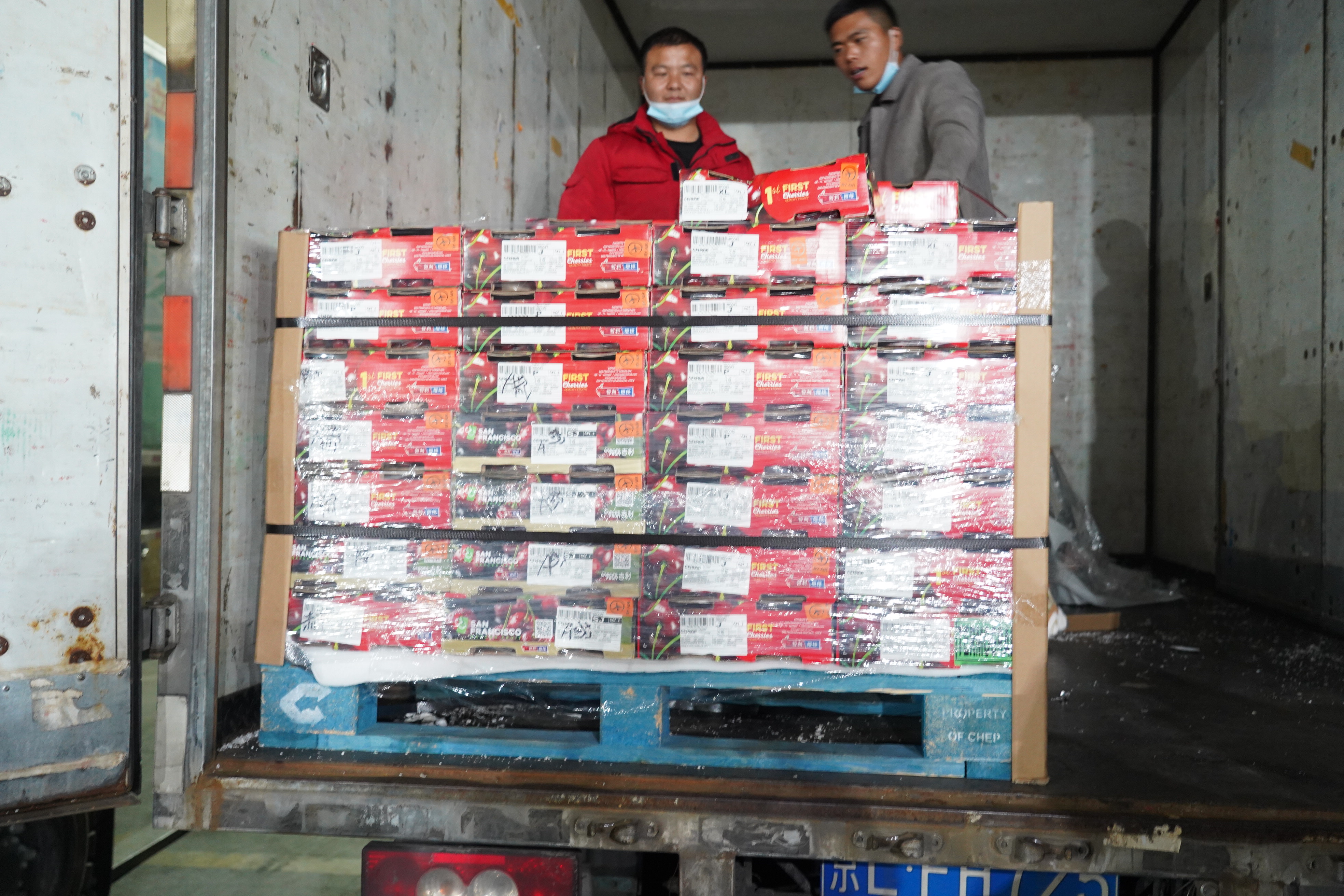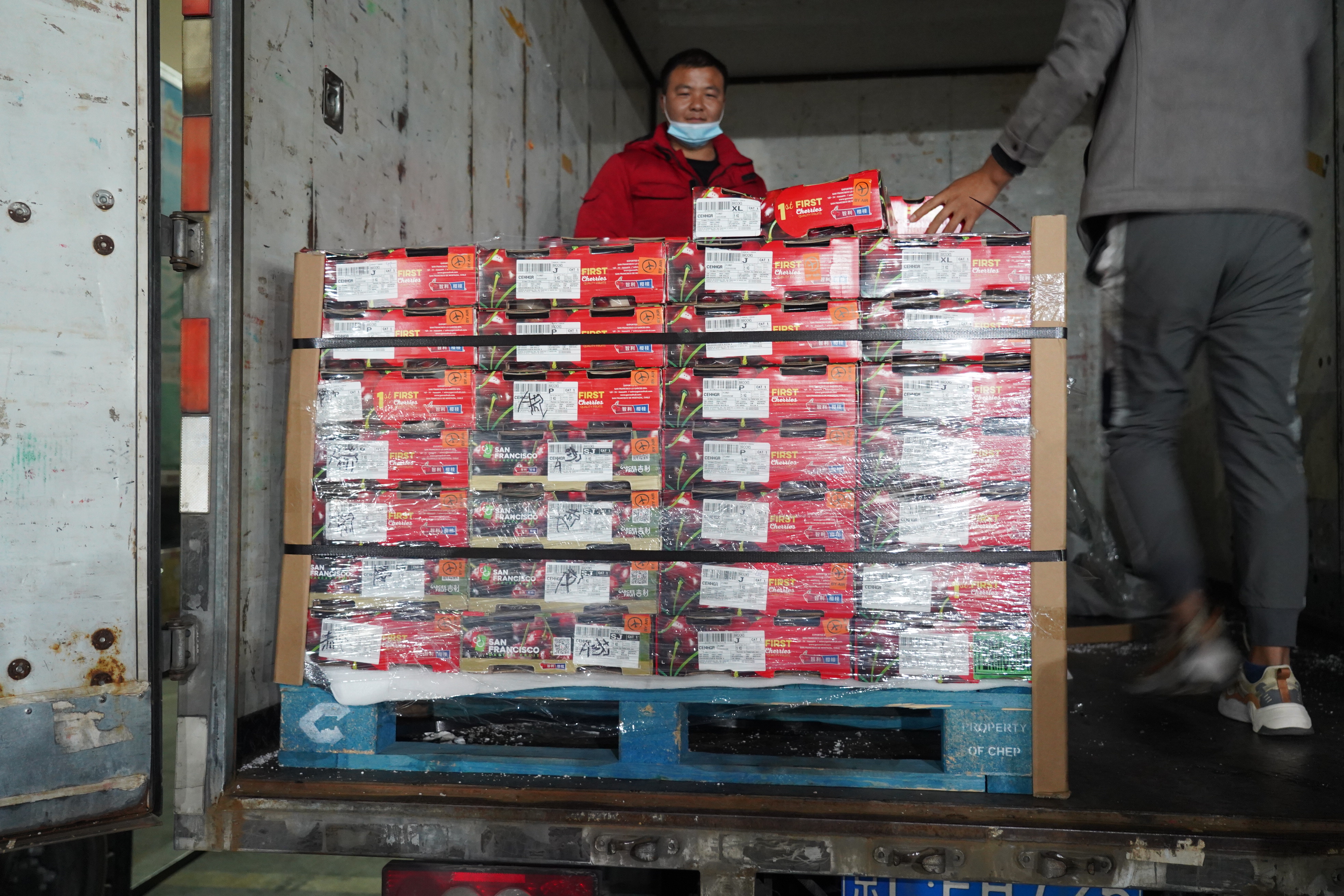 10月26日凌晨4點(diǎn),2021-2022年首批新產(chǎn)季智利車?yán)遄舆\(yùn)抵首衡河北新發(fā)地,開柜不到半小時(shí),即宣告售罄。