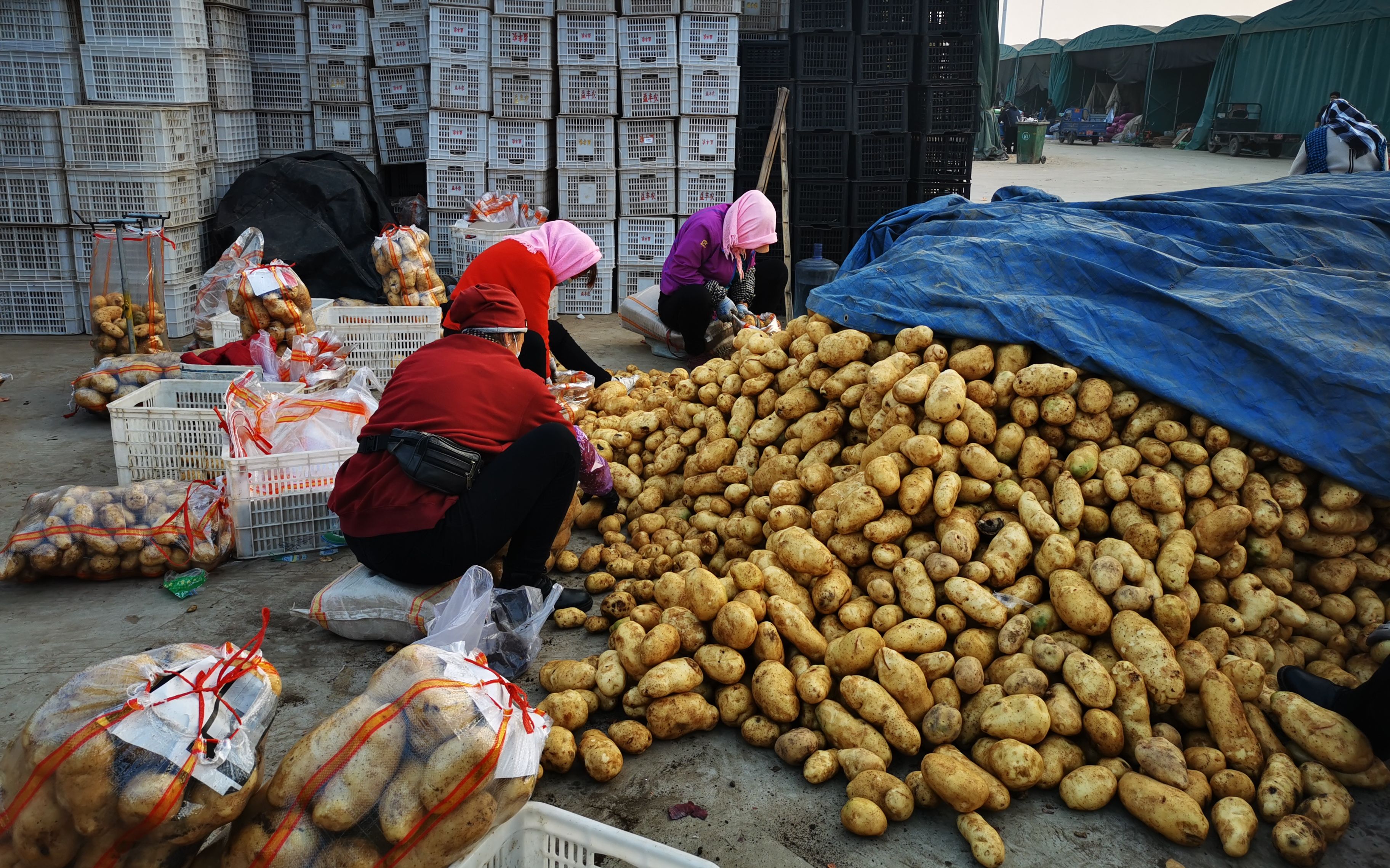 土豆是冬儲菜之一,最近市場里的土豆大戶格外繁忙。土豆經營戶徐長軍介紹,目前攤位上的土豆來自內蒙古,在太仆寺旗有2000畝的種植基地,產地存儲庫目前有1萬噸土豆,會根據市場需求,補給高碑店市場,產地的貨源充足,肯定不會缺貨的。