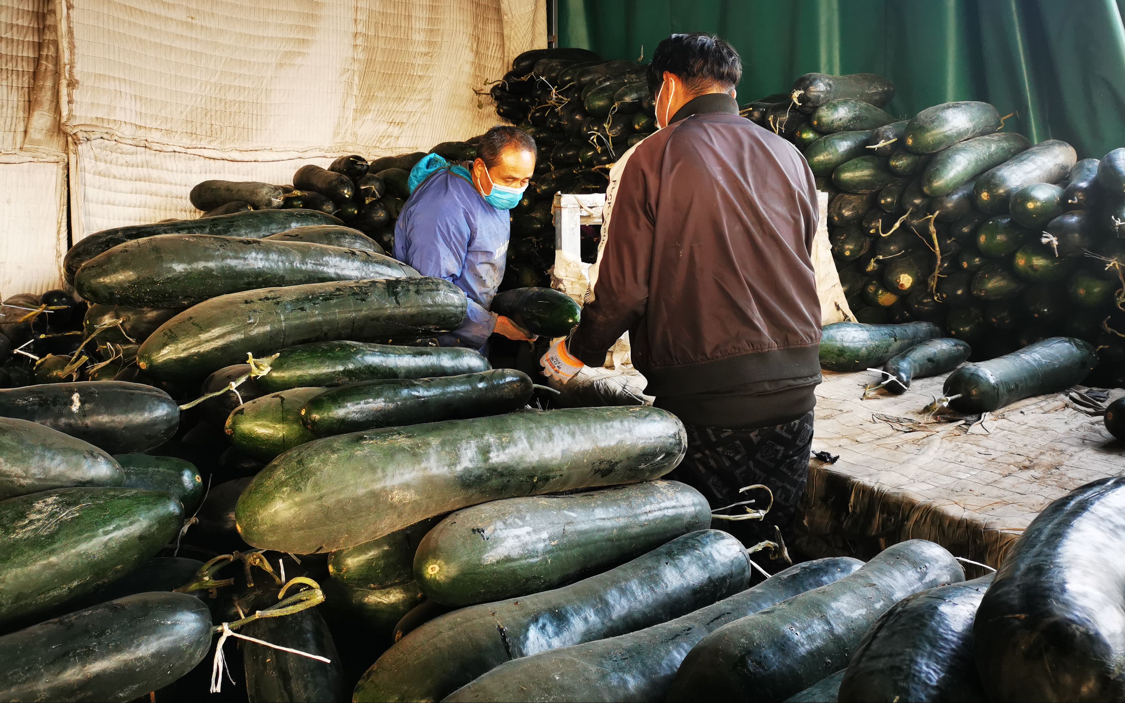 市場商戶們也提前做足了準備,鎖定產地貨源,保證市場供應。在冬瓜交易區,經營大戶宋洪碩正在根據訂購訂單安排出貨,“最近每天出貨20多噸,產地貨源很充足,現在的冬瓜主要來自廣西南寧,我們與上林、馬山縣的兩個合作社都簽訂了包銷協議,可以一直供給到春節,節后冬瓜主產區將轉移到海南,我們也有四個合作的合作社,不用擔心供給問題。”宋洪碩介紹。