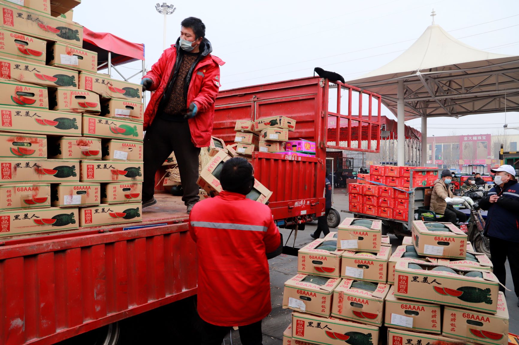 在西瓜交易區(qū),從事水果經(jīng)營的商戶王大偉正在忙碌著接單發(fā)貨,“我主要是銷售西瓜,主要經(jīng)營品牌有火麒麟、好人緣,有麒麟、黑美人、小鳳等品類,每天銷售100噸,量比平時增了30多噸。在橘橙交易區(qū),我們還有幾個車位,走量也不錯,比平時翻了一番。”王大偉介紹說。說話的功夫又來了好幾筆訂單。“我們主要供應(yīng)物美等連鎖商超,京東、盒馬等電商平臺,除了京津冀我們還銷往東三省、內(nèi)蒙、山西等地。目前我們貨源充足的很,我們這個春節(jié)不休息了,保障大家水果不斷檔!”王大偉補充到。