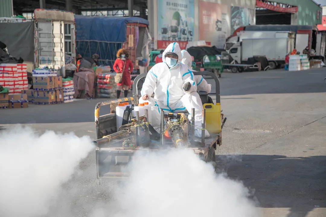 檢疫檢測工作實行輪班制,確保24小時有防疫人員在崗在位,通過排查檢測,嚴防新冠疫情流入市場。在市場內(nèi),工作人員和消殺車輛對園區(qū)各個角落進行反復(fù)消殺,確保園區(qū)安全無死角。