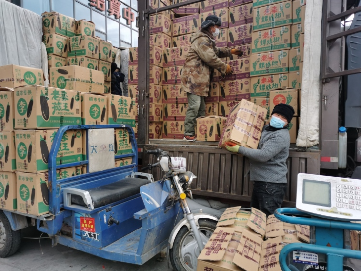 在蔬菜交易區,蔬菜經營商戶李雪坤正在給內蒙古的超市發貨。他介紹:“京津冀地區、東三省、內蒙古、山西等地的訂單都排滿了,我們所有工作人員都就地過年保供。我們在湖北、云南、甘肅等地設有甘藍、圓茄、洋蔥種植基地,儲備十分充足。現在每天銷售甘藍40噸至50噸,茄子100噸,豆類、尖椒銷量也很好。”