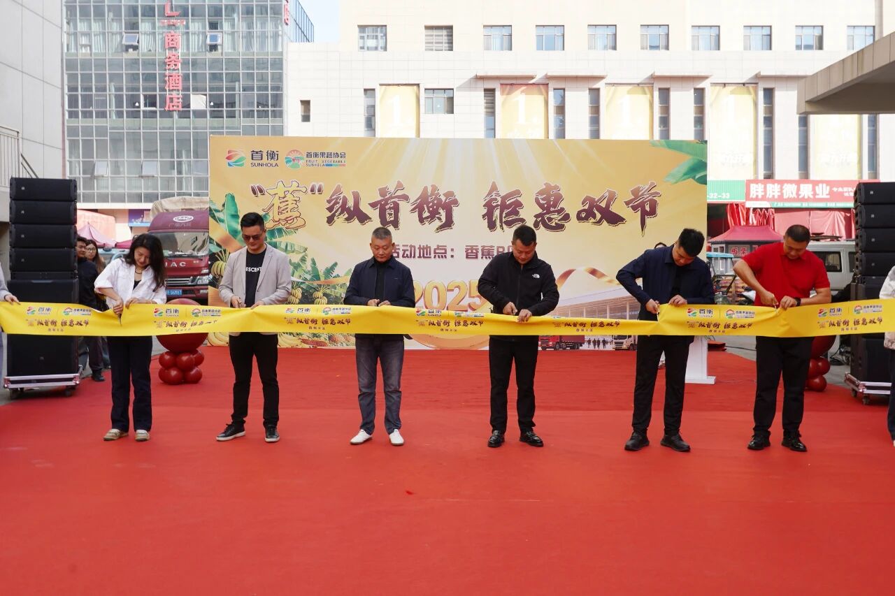 秋高氣爽,蕉香四溢。9月25日,備受矚目的“‘蕉’縱首衡,鉅惠雙節(jié)”——首衡市場香蕉專區(qū)聯(lián)合大促活動在香蕉B區(qū)盛大舉行并取得圓滿成功!現(xiàn)場人流如織,氣氛熱烈,七大商戶聯(lián)合推出的“買十贈一”鉅惠活動引爆了采購熱潮。首衡農(nóng)副集團(tuán)副總裁楊建飛、首衡農(nóng)副公司總經(jīng)理米大帥出席活動。