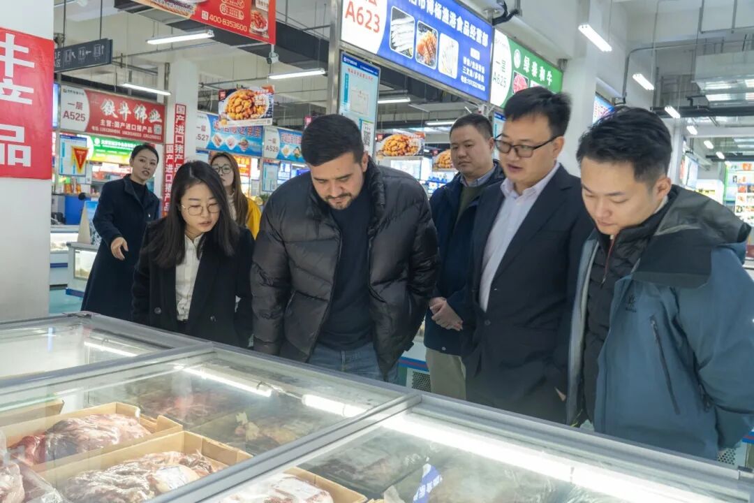 訪問伊始,代表團在首衡集團展示中心詳細了解了集團的建設歷程、戰略規劃與市場實時運營情況。作為中國食品流通領域的標桿企業,首衡集團匯聚了數千家進出口貿易商戶,近年來積極融入“一帶一路”建設,緊抓“國內國際雙循環”發展機遇,已與全球50多個國家和地區的100多家優質供應商建立了穩固的合作關系,正全力打造“買全球、賣全球”的國際化農業產業鏈綜合服務平臺。