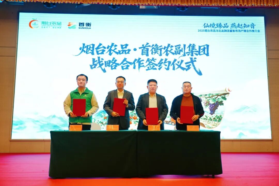 在現場簽約環節,首衡農副集團副總裁楊建飛與煙臺市蘋果協會、甘薯產業協會、萊州市大姜協會的代表共同簽署了戰略合作協議。此次簽約不僅為煙臺農產品打通了華北市場的“快捷通道”,也為首衡市場豐富了優質貨源,為后續“直采直供、按需定制”的長期合作奠定堅實基礎。