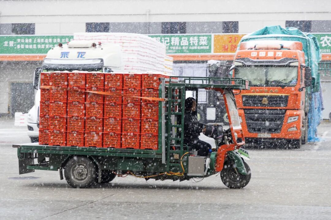 物流全線暢通,精準送達“最后一公里”。為確保農產品能“進得來、出得去”,首衡集團與屬地交通管理部門建立了實時聯動機制,為符合條件的保供車輛提供通行便利與路線指引。同時,面對雪天路況挑戰,首衡集團充分發揮其強大的物流組織能力。市場不僅與京東、中通等100余家品牌物流企業深度合作,還在園區內集聚了多家專業物流服務商,共同開拓培育了200余條覆蓋全國的穩定物流線路。這套成熟高效的物流網絡,在雪天發揮了關鍵作用,有效優化了從市場到社區、商超的“最后一公里”配送,確保農產品能夠準時、安全抵達終端。